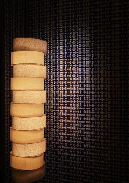 犹如天窗和格栅那样,在京都市街的空间中具有十分重要意义的光和影,功能性的控制白天敏感的光,营造出阴和阳具有深度的空间。夜晚则用方形纸罩座灯等矮灯演绎出和白天完全不同的效果。