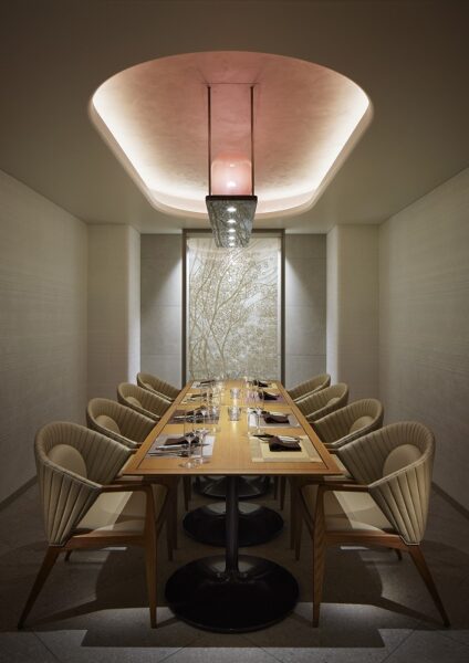 要将主餐厅的日本料理转换为法式餐厅的规划,作为法式餐厅,在拥有众多日本料理店、餐厅区域中,我们考虑了地域性丰富的福井的魅力要素,进行了设计。