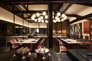 かつての木曽街道軽井沢宿の活気に満ちた台所をイメージした「かまど」、民家風建築の力強い「梁空間」、軽井沢で感じる自然の風景などを表現し、日本の食文化の豊かさをライブ感あふれる演出で楽しめるレストランとしました。